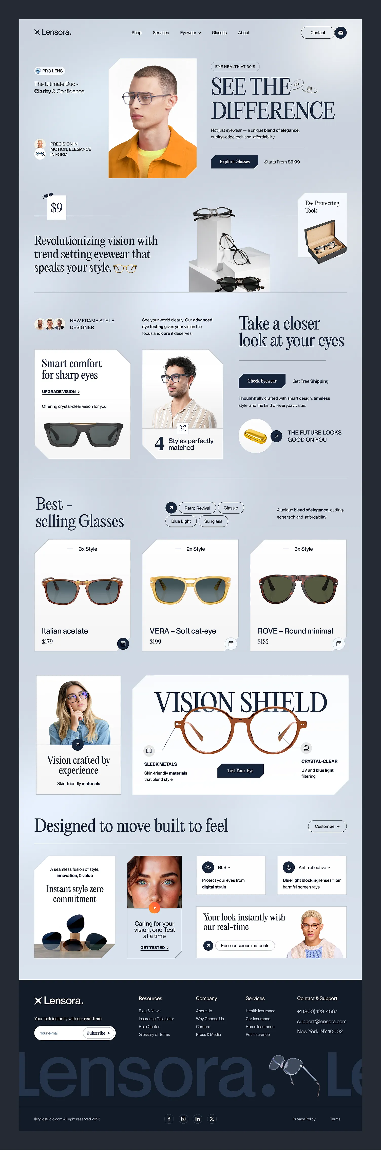 From curated collections to style-matching guides, the interface empowers users to explore, test, and choose eyewear with confidence. Key features like eye testing prompts, category filters, and stylish storytelling set Lensora apart in the digital eyewear market.